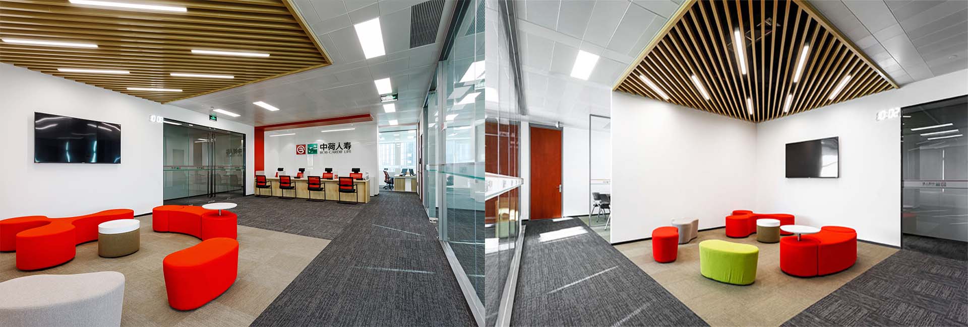 工程名稱:北京中荷人壽保險(xiǎn)有限公司辦公室裝修工程 建筑面積:664.35㎡